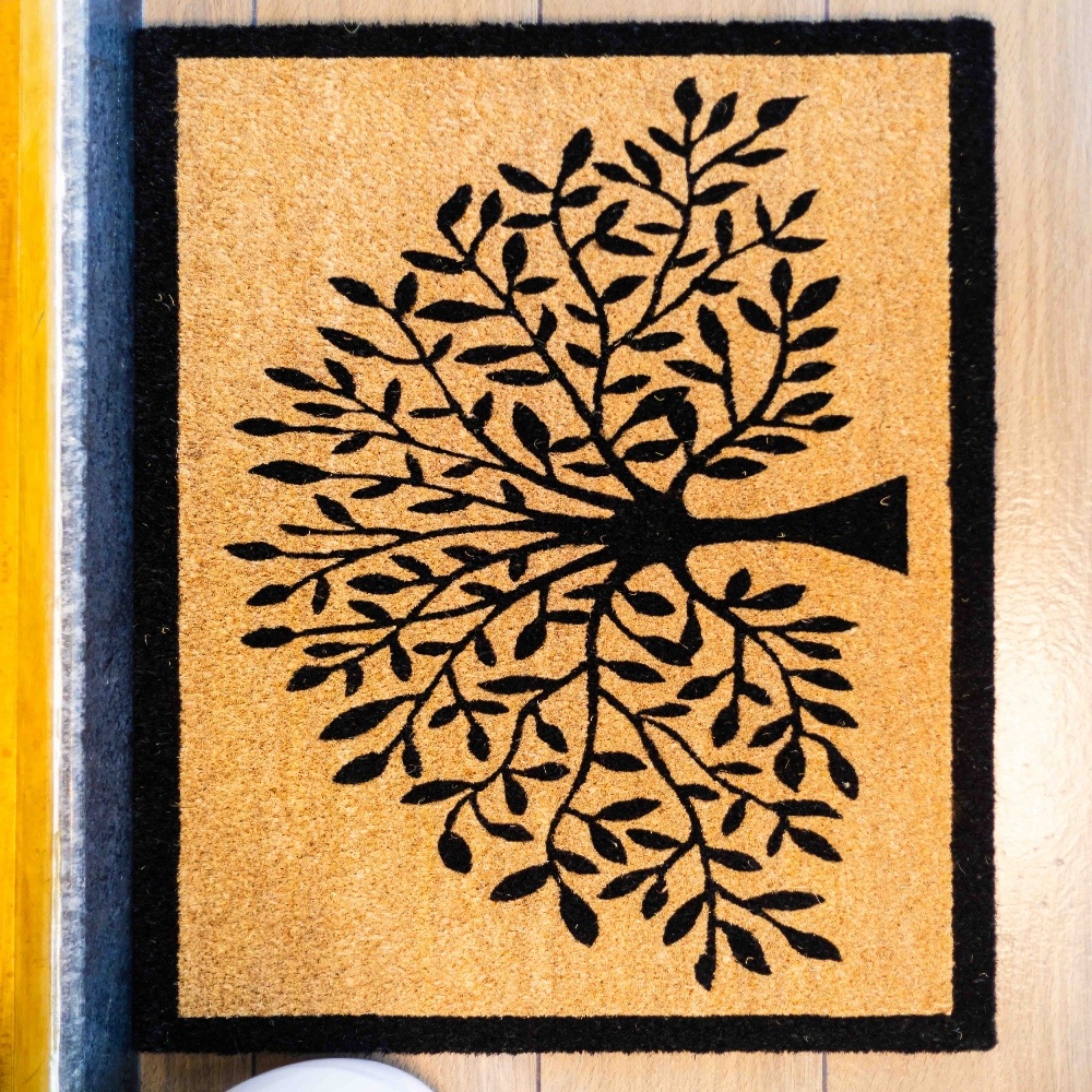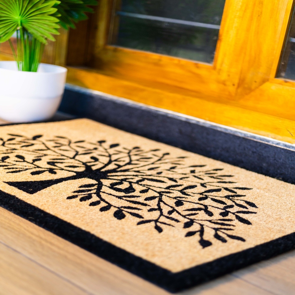 Natural coir with an anti-slip PVC backing makes up the premium Tree Design Coir Doormat, which is ideal for tidy, fashionable, and long-lasting house entrances.